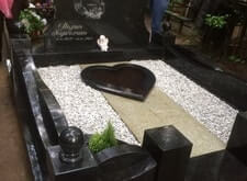 Мемориальный комплекс из черного гранита с цветником в виде сердца